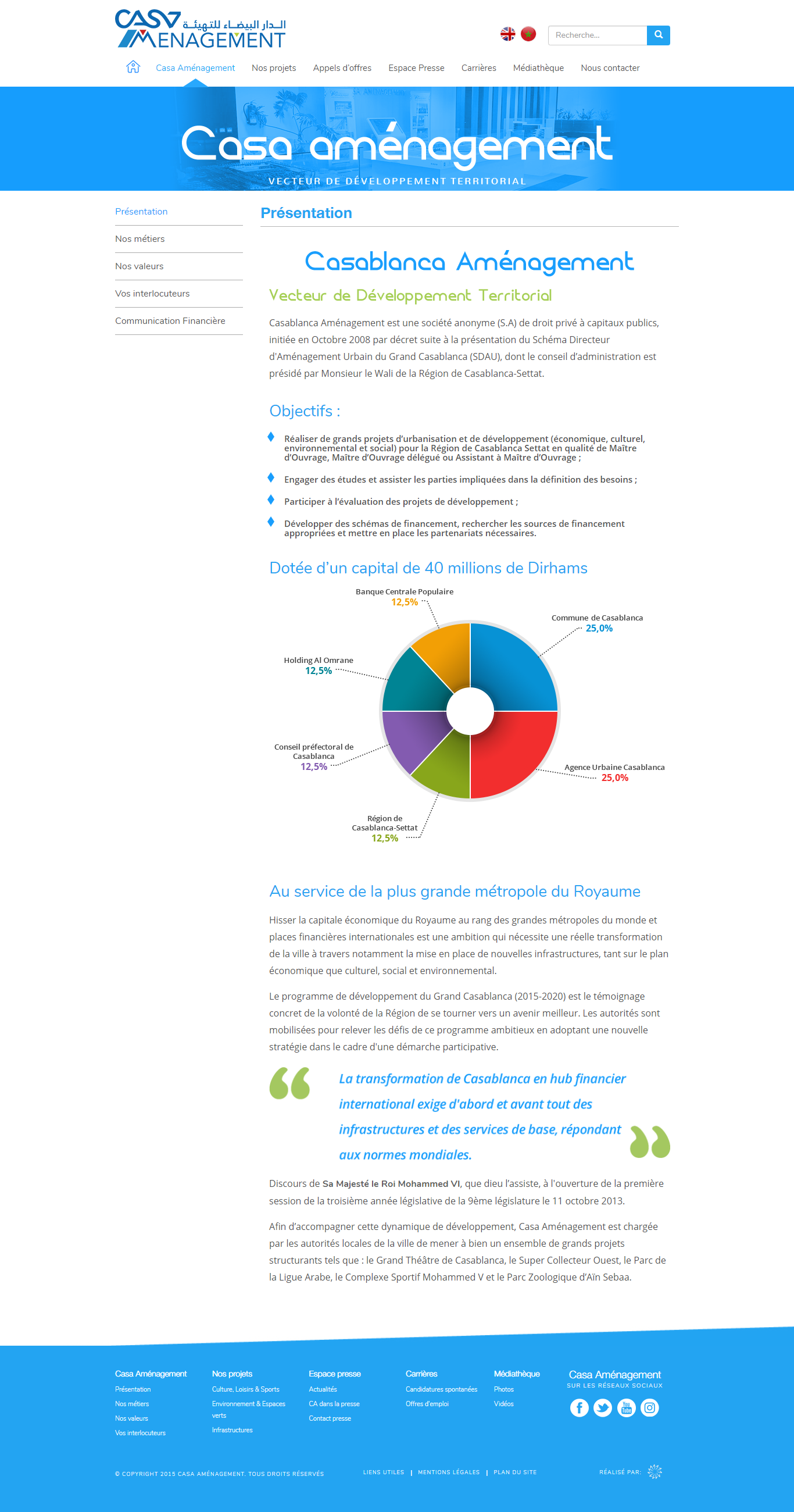 Nous avons collaboré avec Casa Aménagement, une société spécialisée dans la maîtrise d'ouvrage pour l'aménagement urbain de la région Casablanca-Settat.