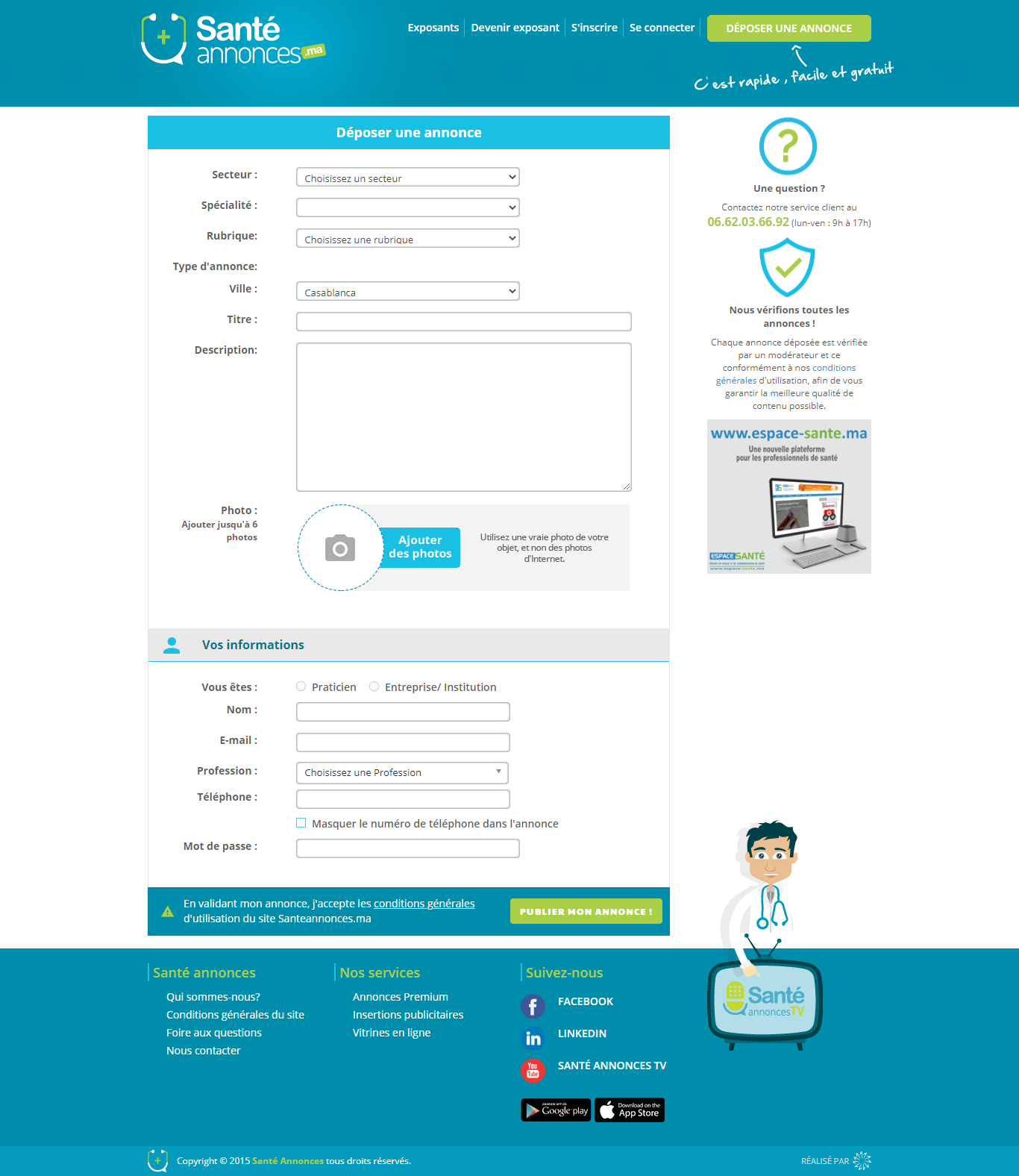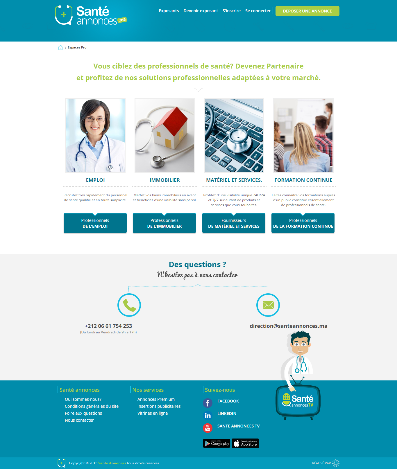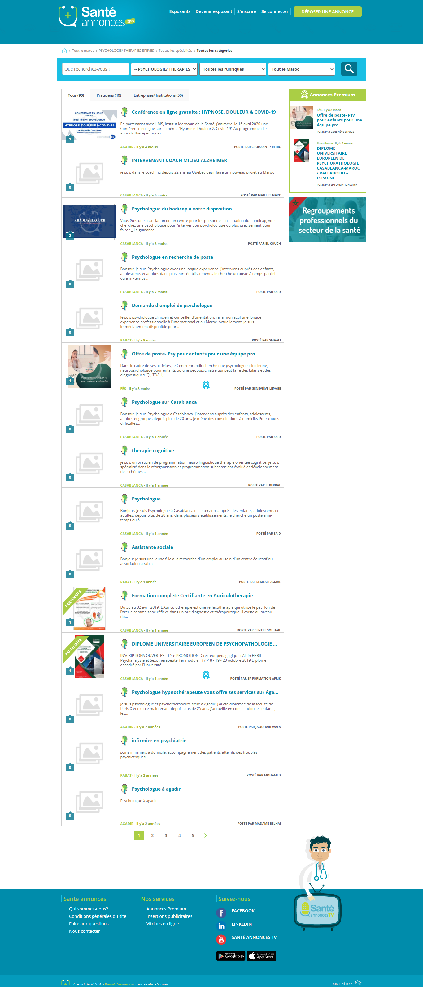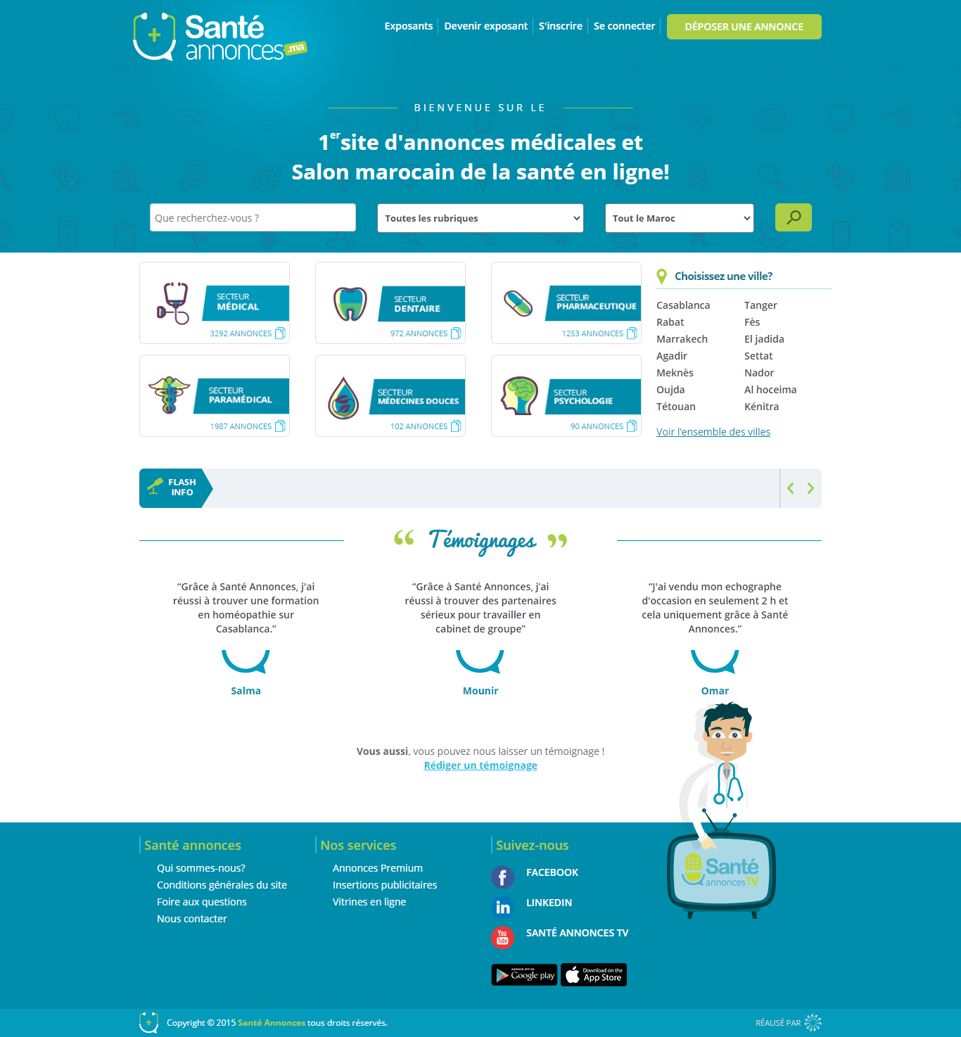 Chez Radium Digital, nous avons eu l'honneur de collaborer avec des leaders du secteur, comme Santé Annonces, le premier site d'annonces gratuites dédié à la santé au Maroc.